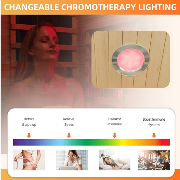 【การผ่อนคลายที่เพิ่มขึ้น】ซาวน่าอินฟราเรดของเราสำหรับบ้านมีหลังคาที่ส่องสว่างด้วยการบำบัดด้วยแสง 7 สีสร้างบรรยากาศที่ดื่มด่ำเพื่อเพิ่มประสบการณ์โดยรวมของคุณ สามารถติดตั้งได้อย่างง่ายดายในห้องใต้ดินห้องน้ำหรือโรงยิมของคุณและด้วยการเชื่อมต่อบลูทู ธ และบาร์ออกซิเจนคุณสามารถเพลิดเพลินกับซาวน่าที่ผ่อนคลาย