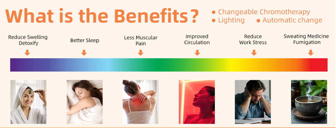 เมื่อใช้การแผ่รังสีอินฟราเรดไกลสามารถส่งเสริมการไหลเวียนโลหิตเร่งการเผาผลาญลดความเหนื่อยล้าของกล้ามเนื้อและช่วยขจัดความชื้นและการเผาผลาญของเสียออกจากร่างกายโดยเฉพาะอย่างยิ่งเหมาะสำหรับผู้ที่อยู่ประจำผู้ที่ชื่นชอบกีฬาและผู้ที่ให้ความสนใจกับสุขภาพประจำวัน เมื่อเทียบกับห้องซาวน่าแบบดั้งเดิมมันใช้พลังงานน้อยลง (มีกำลังประมาณ 800-1200W) ให้ความร้อนเร็วขึ้น (ถึงอุณหภูมิที่ตั้งไว้ภายใน 10 นาที) และไม่จำเป็นต้องใช้ระบบระบายน้ำที่ซับซ้อน การบำรุงรักษาทุกวันเป็นเรื่องง่ายทำให้เมืองทันสมัยมีวิธีแก้ปัญหาสุขภาพที่บ้านที่สะดวกและมีประสิทธิภาพ