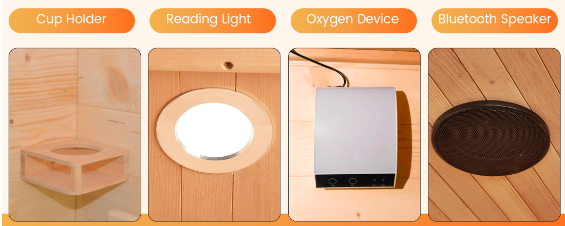 【ผลประโยชน์ความเป็นอยู่ที่ดี】ห้องซาวน่าส่วนตัวของเราส่งเสริมการล้างพิษช่วยเพิ่มการไหลเวียนโลหิตและให้การบรรเทาจากอาการปวดข้อและกล้ามเนื้อ นอกเหนือจากการเผาผลาญแคลอรี่แล้วยังช่วยเพิ่มโทนสีผิวและมอบประสบการณ์ที่อบอุ่นเงียบสงบและสงบเงียบเพื่อให้มั่นใจว่าเป็นอยู่ที่ดีของคุณ
