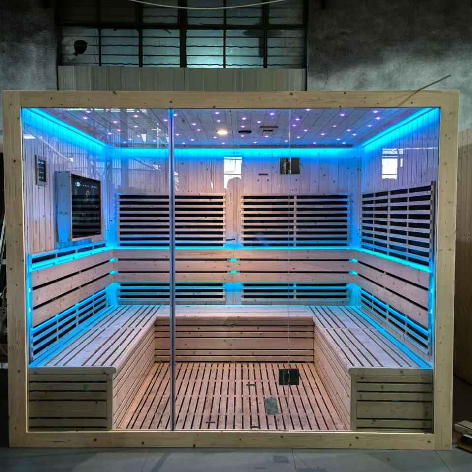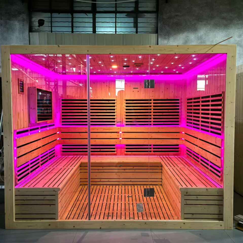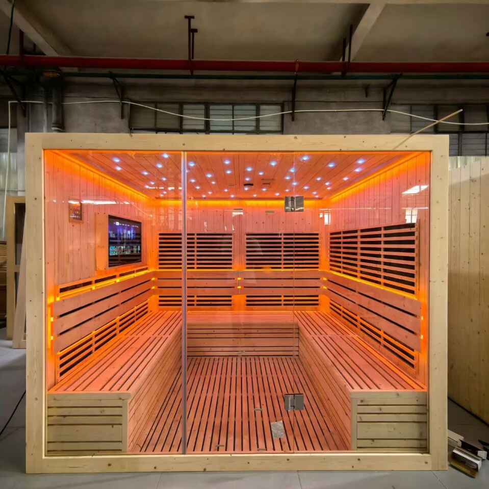 คุณกำลังมองหาห้องซาวน่าที่กว้างขวางและหรูหราสำหรับการพักผ่อนเป็นกลุ่ม สังสรรค์ หรือใช้ในเชิงพาณิชย์อยู่หรือเปล่า? ซาวน่าสำหรับ 5-10 คน ห้องซาวน่าอินฟราเรดแบบไม้พร้อมทีวี LCD ได้รับการปรับแต่งให้ตรงกับความต้องการของคุณ โดยผสมผสานวัสดุระดับพรีเมียม เทคโนโลยีขั้นสูง และการออกแบบที่คำนึงถึงมนุษย์เป็นหลัก