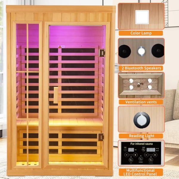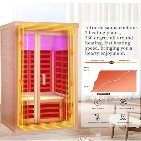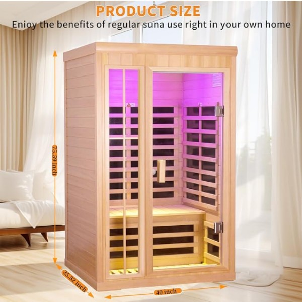 ·【ห้องซาวน่าอินฟราเรดสองเท่าของครอบครัว】: ซาวน่าในร่ม-1 ถึง 2 คนขนาดพื้นที่ภายใน: 40* 35.8* 75.59 นิ้วเหมาะสำหรับผู้คน 1.5 ~ 1.9 เมตร (4.9-6.2 ฟุต) สูงในการโหลดที่นั่ง 660 ปอนด์ (300 กิโลกรัม)