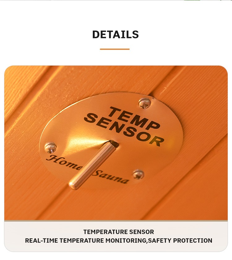 • ระบบควบคุมอุณหภูมิแบบเรียลไทม์: เซ็นเซอร์อุณหภูมิในตัวตรวจสอบอุณหภูมิภายในอาคารอย่างแม่นยำเพื่อความปลอดภัยของซาวน่า