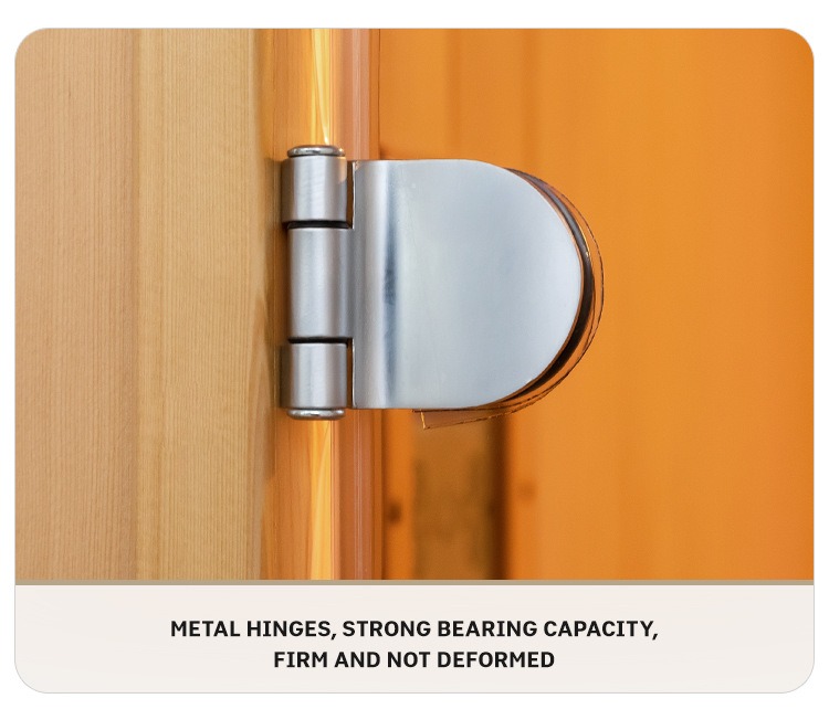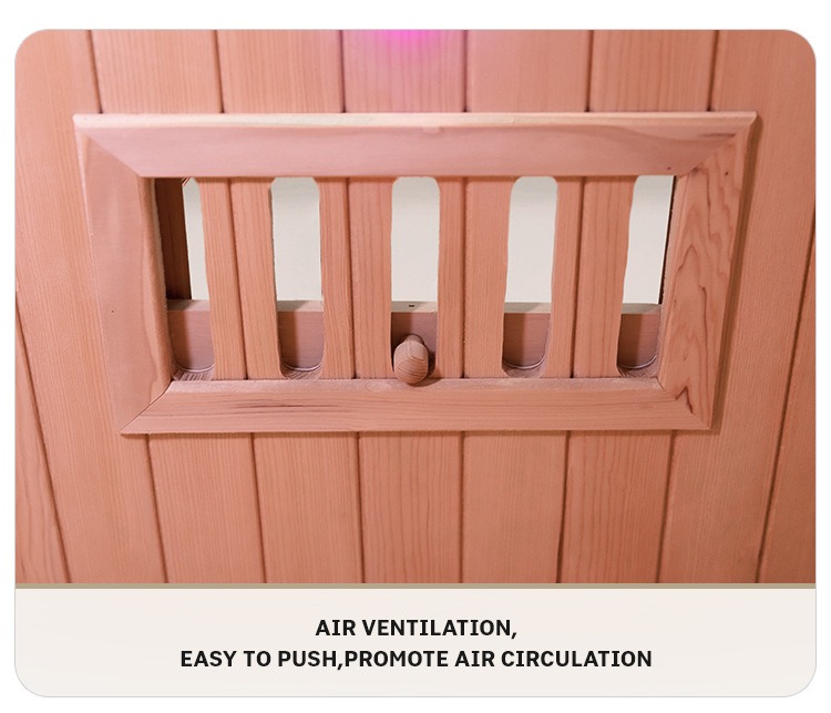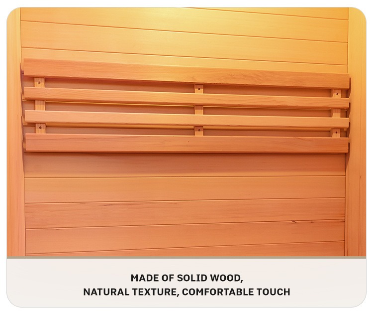 ห้องซาวน่าอินฟราเรดในร่มสำหรับบ้านนี้ใช้ Canadian Hemlock และ Red Cedar ระดับพรีเมี่ยมเป็นฐาน โดยมีฐานไม้แขวนลอยเพื่อยกระดับขึ้นเล็กน้อย ประกอบด้วยแผงสัมผัส LCD อัจฉริยะ (พร้อมไฟส่องสว่าง การปรับเวลา บลูทูธ FM และ MP3) ประตูกระจกทนความร้อนสีเทา-ดำ (ความสวยงามระดับไฮเอนด์ การปกป้องความเป็นส่วนตัว) ระบบควบคุมอุณหภูมิแบบเรียลไทม์ ส่วนประกอบระบบสัมผัสที่ทำจากไม้เนื้อแข็ง บานพับโลหะ ช่องระบายอากาศหมุนเวียน และระบบเสียงลำโพงคู่ สามารถรองรับแขกได้ตั้งแต่ 10 คนขึ้นไป โดยผสมผสานความงามตามธรรมชาติ เทคโนโลยีอัจฉริยะ และรายละเอียดอันประณีตเพื่อสร้างประสบการณ์การดูแลสุขภาพที่บ้านในระดับมืออาชีพ