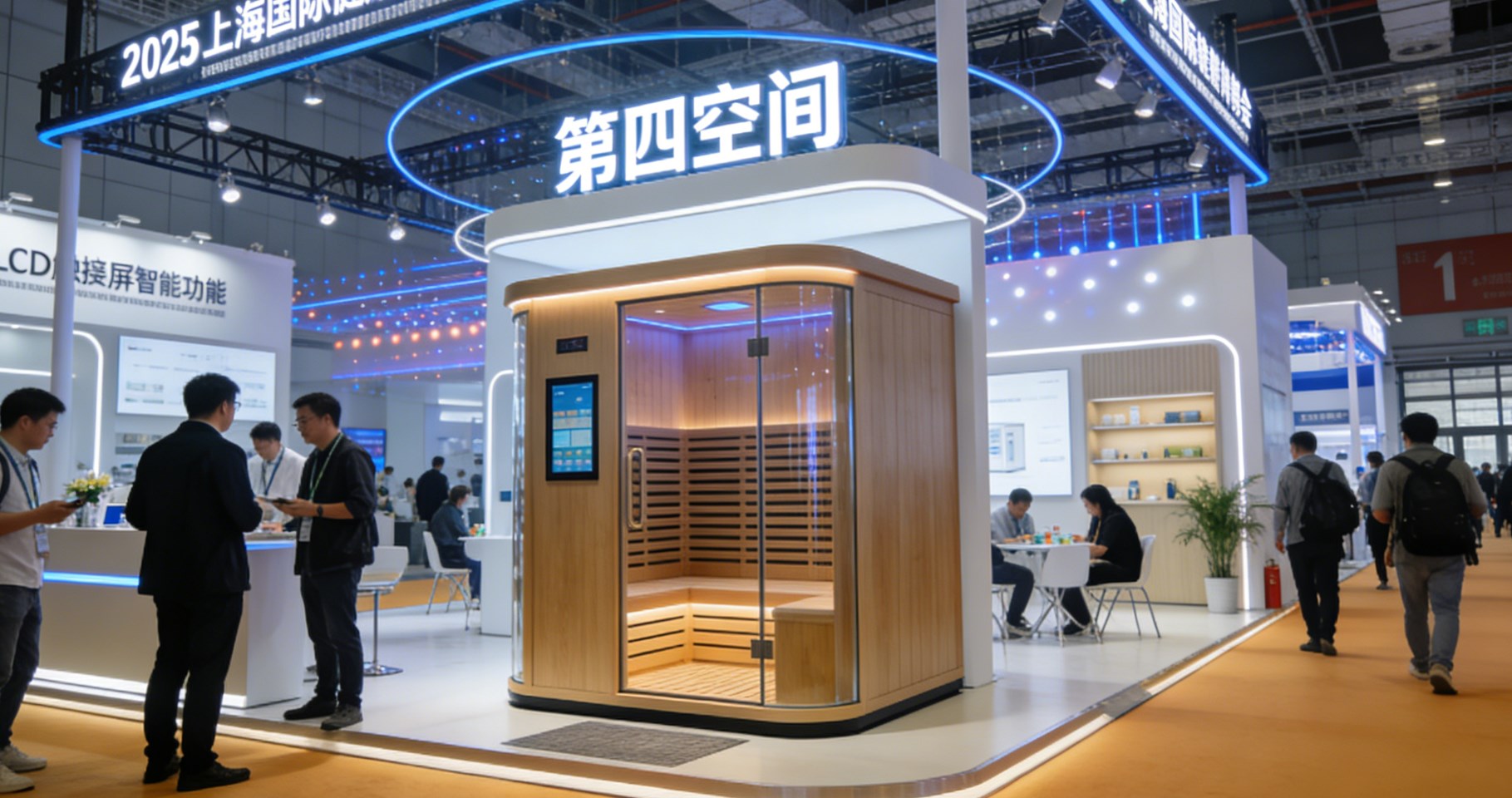 ในงาน Shanghai International Health Industry Expo ประจำปี 2025 ซึ่งมีคอนเซ็ปต์ "Fourth Space" เสร็จสิ้นไปเมื่อเร็วๆ นี้ห้องซาวน่าซึ่งจัดแสดงโดยบริษัทต่างๆ เช่น Xuzhou Kangzhiyuan ได้รับความสนใจ ผลิตภัณฑ์ดังกล่าวมาพร้อมกับหน้าจอสัมผัส LCD อินเทอร์เฟซการถ่ายทอดสด Tiktok และฟังก์ชันปรับอุณหภูมิด้วยเสียง ซึ่งรองรับเส้นโค้งอุณหภูมิและระบบกลิ่นหอมที่ผู้ใช้กำหนด (เช่น ปล่อยน้ำมันหอมระเหยตะไคร้ที่อุณหภูมิ 60 ℃ เปลี่ยนกลิ่นซีดาร์ที่อุณหภูมิ 80 ℃) และยังสามารถเชื่อมโยงห้องน้ำอัจฉริยะเพื่อตรวจสอบองค์ประกอบของเหงื่อ