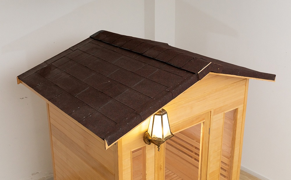 หลังคาใช้โครงสร้างกันน้ำและป้องกันแสงแดดหลายชั้น ชายคาที่กว้างขึ้นสามารถป้องกันน้ำฝนจากการกัดเซาะเฮมล็อคได้อย่างมีประสิทธิภาพ ทำให้มั่นใจได้ว่าการใช้งานผลิตภัณฑ์จะมีเสถียรภาพในสภาพแวดล้อมกลางแจ้งต่างๆ รูปร่างโดยรวมผสมผสานพื้นผิวธรรมชาติของเฮมล็อคเข้ากับประตูกระจกด้านบนของฮวงจุ้ยและโคมไฟติดผนังสไตล์เรโทรอย่างชาญฉลาด กลายเป็น "คุณลักษณะภูมิทัศน์ที่ใช้งานได้" ในลานบ้าน เพิ่มเสน่ห์อันเป็นเอกลักษณ์ให้กับพื้นที่กลางแจ้ง