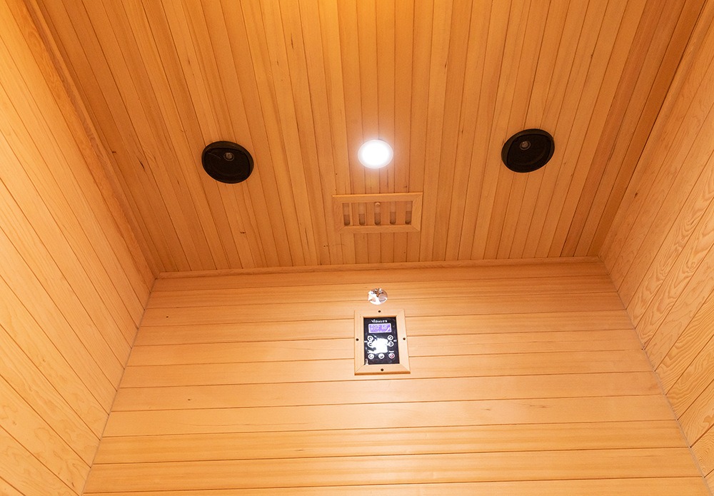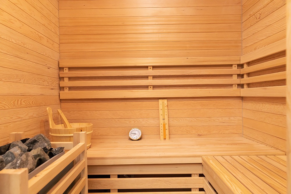 ห้องซาวน่าไอรอนวูดกลางแจ้งพร้อมโคมไฟติดผนังและประตูกระจก เบาะนั่งและพนักพิงพอดีกับส่วนโค้งของสรีระของมนุษย์อย่างลงตัว ทำให้นั่งสบายแม้นั่งเป็นเวลานาน และกระจายแรงกดหลังได้อย่างมีประสิทธิภาพ การออกแบบการระบายอากาศแบบหลายจุดที่ด้านล่างส่งเสริมการไหลเวียนของอากาศอย่างมีประสิทธิภาพ ช่วยเพิ่มความสะดวกสบายของประสบการณ์ซาวน่า ในขณะเดียวกัน ก็มีการติดตั้งระบบจัดเก็บอย่างพิถีพิถัน เช่น ที่วางแก้ว ชั้นวางผ้าเช็ดตัว และชั้นวางหนังสือพิมพ์ ช่วยให้คุณเข้าถึงสิ่งของที่จำเป็นได้อย่างง่ายดายในขณะที่ผ่อนคลาย พร้อมรายละเอียดที่ครบถ้วนตามหลักมนุษยธรรม
