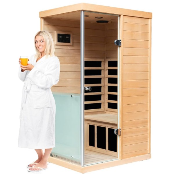 ห้องซาวน่าขนาดเล็กสำหรับ 1 คน มีการออกแบบที่กะทัดรัดและประณีต ทำให้เหมาะสำหรับครอบครัวหรืออพาร์ตเมนต์ขนาดเล็ก แม้ว่าพื้นที่ภายในจะมีขนาดกะทัดรัด แต่ก็เพียงพอที่จะรองรับคนเพียงคนเดียวเพื่อผ่อนคลายและเพลิดเพลินกับซาวน่าได้อย่างสะดวกสบาย